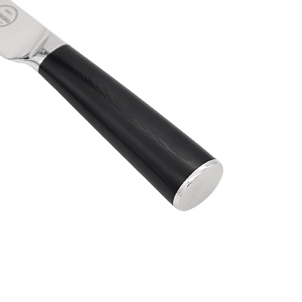 Das Sumisu Yanagiba Black ist hervorragend ausbalanciert und bietet optimale Kontrolle sowie reduzierte Ermüdung auch bei längerem Einsatz. Es wiegt 214 Gramm und hat eine Gesamtlänge von 32 cm, mit einer Klingenlänge von 21 cm. Der Griff besteht aus G10 (Glasfaserverbund), einem starken und leichten Material, das auch bei nassen Händen eine sichere und komfortable Handhabung gewährleistet.